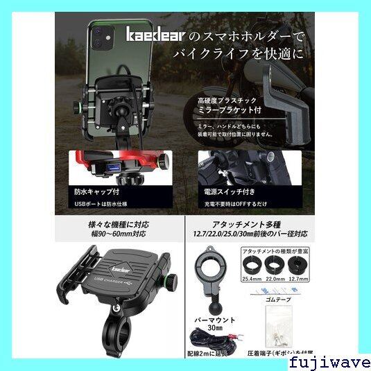 Kaedear カエディア バイク スマホホルダー USB 充電 携帯 ホルダー スマホ マウント スタンド バイク用 パワーグリップ USB QC3.0 電源 防水 バイク用スマホホルダー ミラー アルミ製 マウント 原付 オートバイ スクーター iPhone Galaxy バイク用品 30