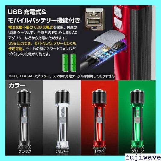 Sサイズ LED懐中電灯 USB充電式 ハンドライト 照射範囲変更可能 ワイドライト スポットライト 面発光 COB LED モバイルバッテリー機能付き ◇WP-LED-S 111