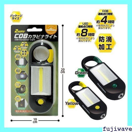 《送料無料》 COBカラビナライト HAC-1730 イエロー グリーン ライト ハンディライト 広範囲ライト カラビナ付き マグネット付き 防滴加工 LEDライト 724