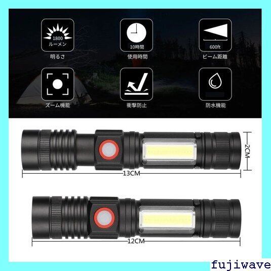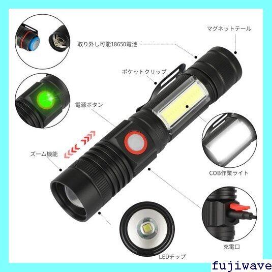 xポイント10倍 懐中電灯 led 強力 最強 充電式 停電 防災対策 ハンディライト フラッシュライト Spriak COBマグネットテール 18650バッテリー ズーム式 7モード 強力 軍用 最強 大容量 ポケットクリップ 高輝度 軽量 1095