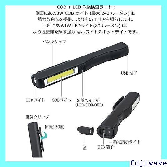 LEDペン型ライト ポケットライト マグネット クリップ USB充電式 作業灯 ワークライト ペンライト 携帯便利 キャンプ 点検 緊急 PENTYU 1196