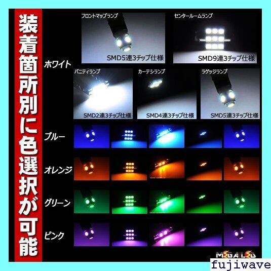 LEDルームランプ 8点セット 発光色は・ホワイト・ブルー・オレンジ・グリーン・ピンクから選択可能 メガLED 105