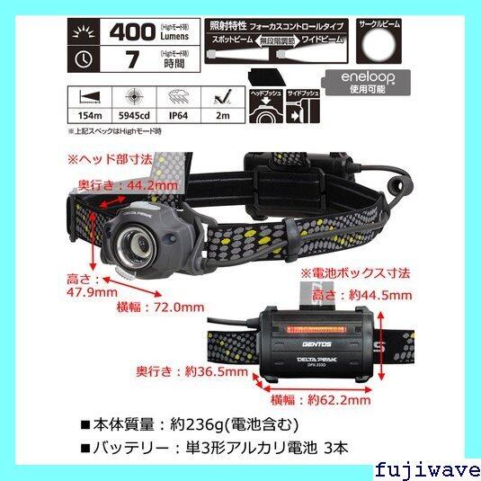 GENTOS ジェントス デルタピーク DPX-333D 頭につけるライト ヘッドランプ LEDヘッドライト 400ルーメン 耐塵耐水IP64準拠 2m落下耐久