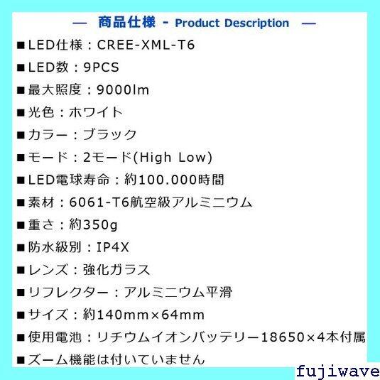 《送料無料》 懐中電灯 LEDライト 18650充電電池4本 セット ハンディライト LED懐中電灯 9000ルーメン バッテリー LED 電池式 防犯 防災 防水 強力 超軽量 超小型 ミニ 防登山 犬散歩 夜行 防災グッズ 塵 ・宴Cト 電池付 最強 ルーメン 501